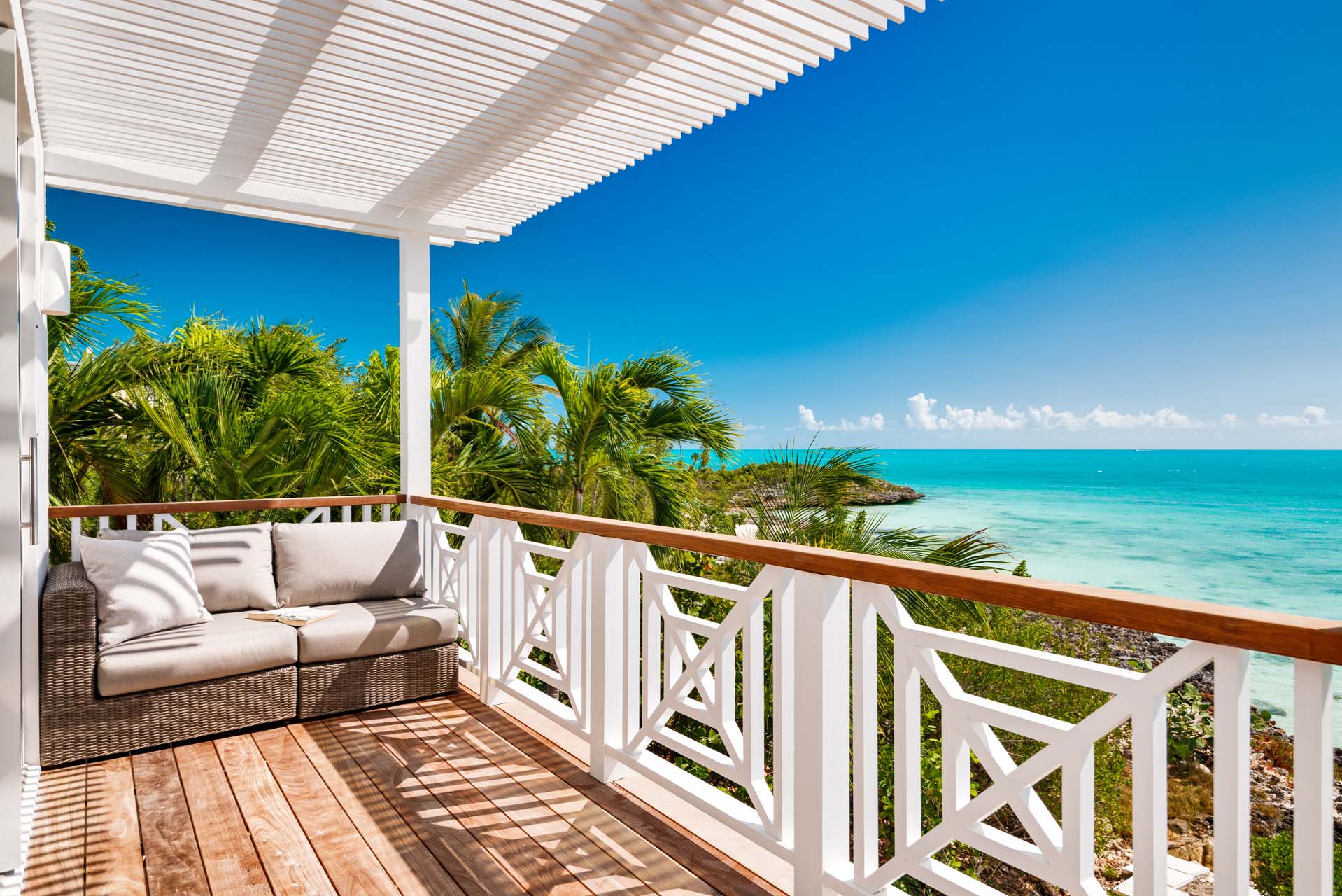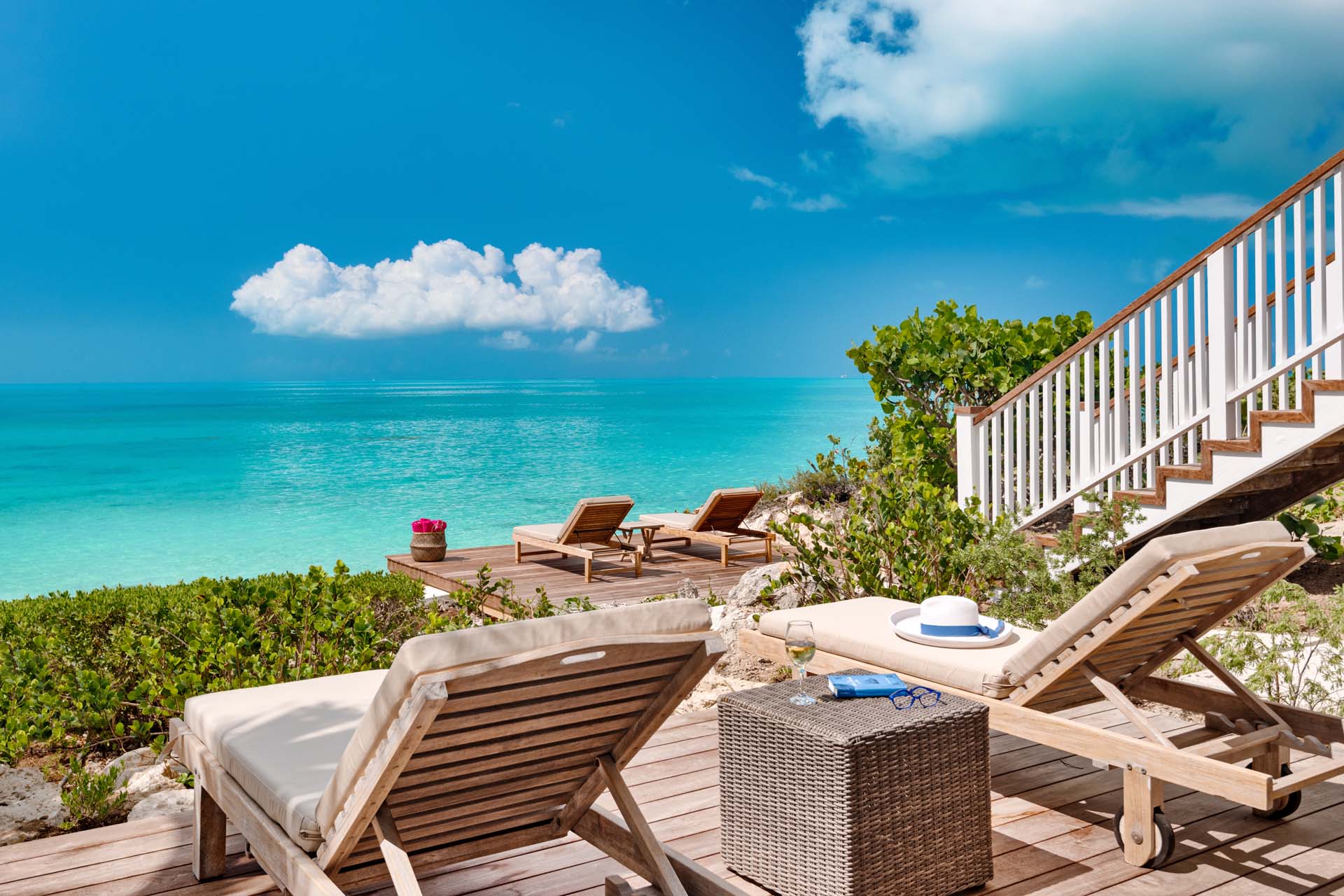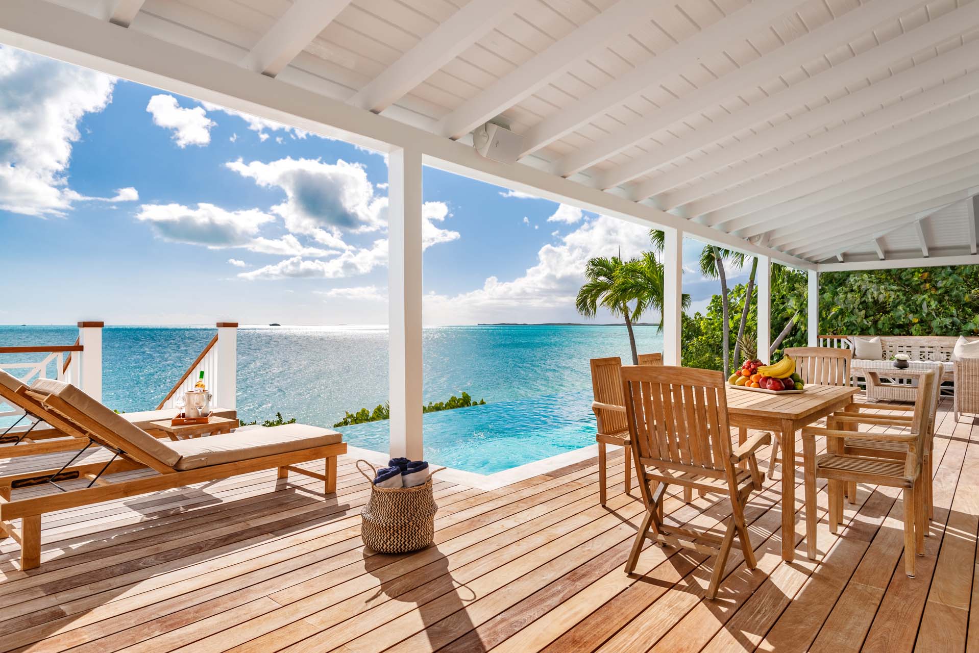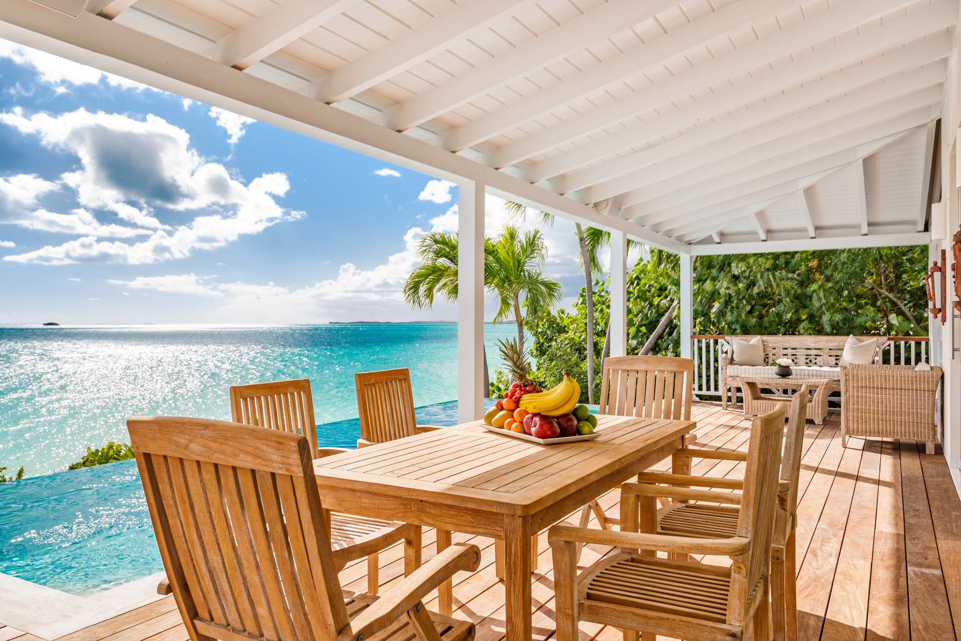Boasting wrap-around verandas that seamlessly integrate with the landscape, the villa is adorned in soothing earth tones and crisp whites, creating an opulent Caribbean sanctuary for guests seeking relaxation and rejuvenation in a tranquil setting.