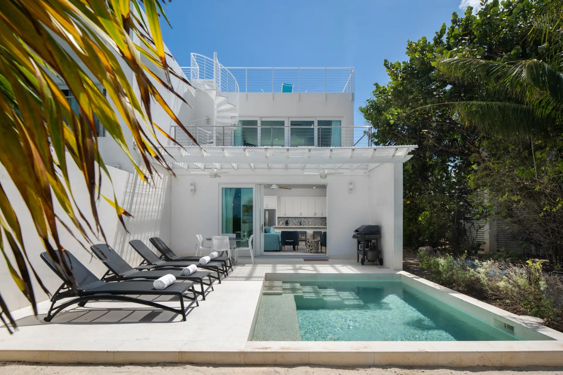 Villa Sandpiper (villa code: PL SPI) is a 2-bedroom beachfront villa that offers an intimate retreat with some of the island’s finest shore snorkeling just steps away. Set along the soft sands of Turtle Cove and providing direct access to the colorful reefs of Smiths Reef, the villa is perfectly positioned for peaceful days by the sea. Covered terraces, sweeping turquoise views, and a private plunge pool create a serene setting where life moves at the gentle pace of the ocean.