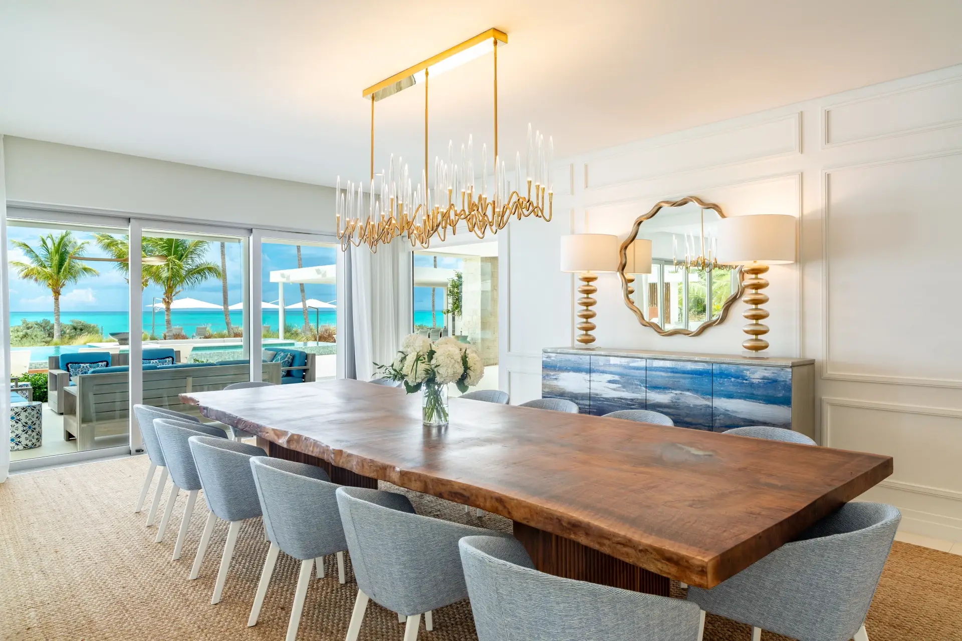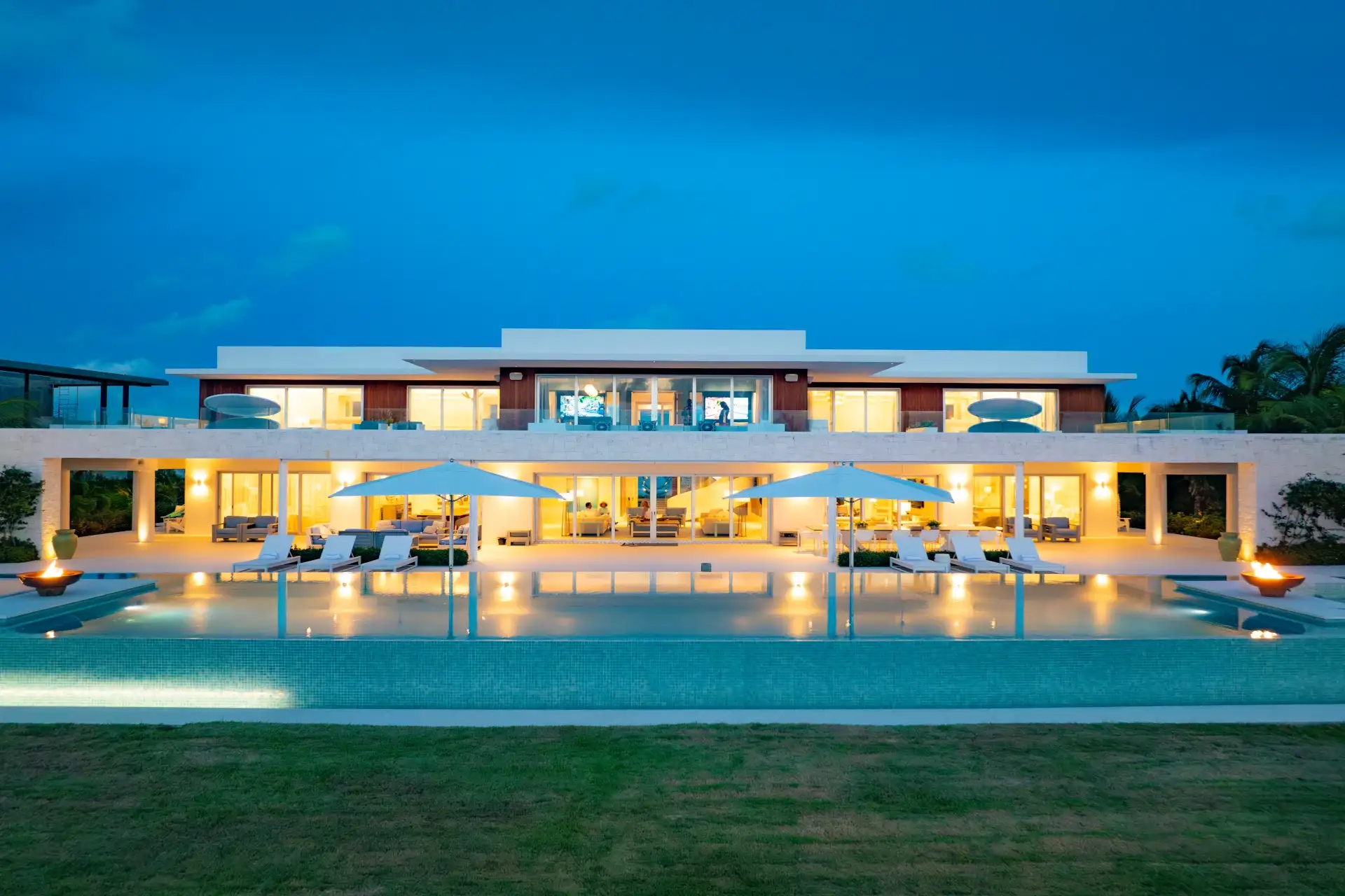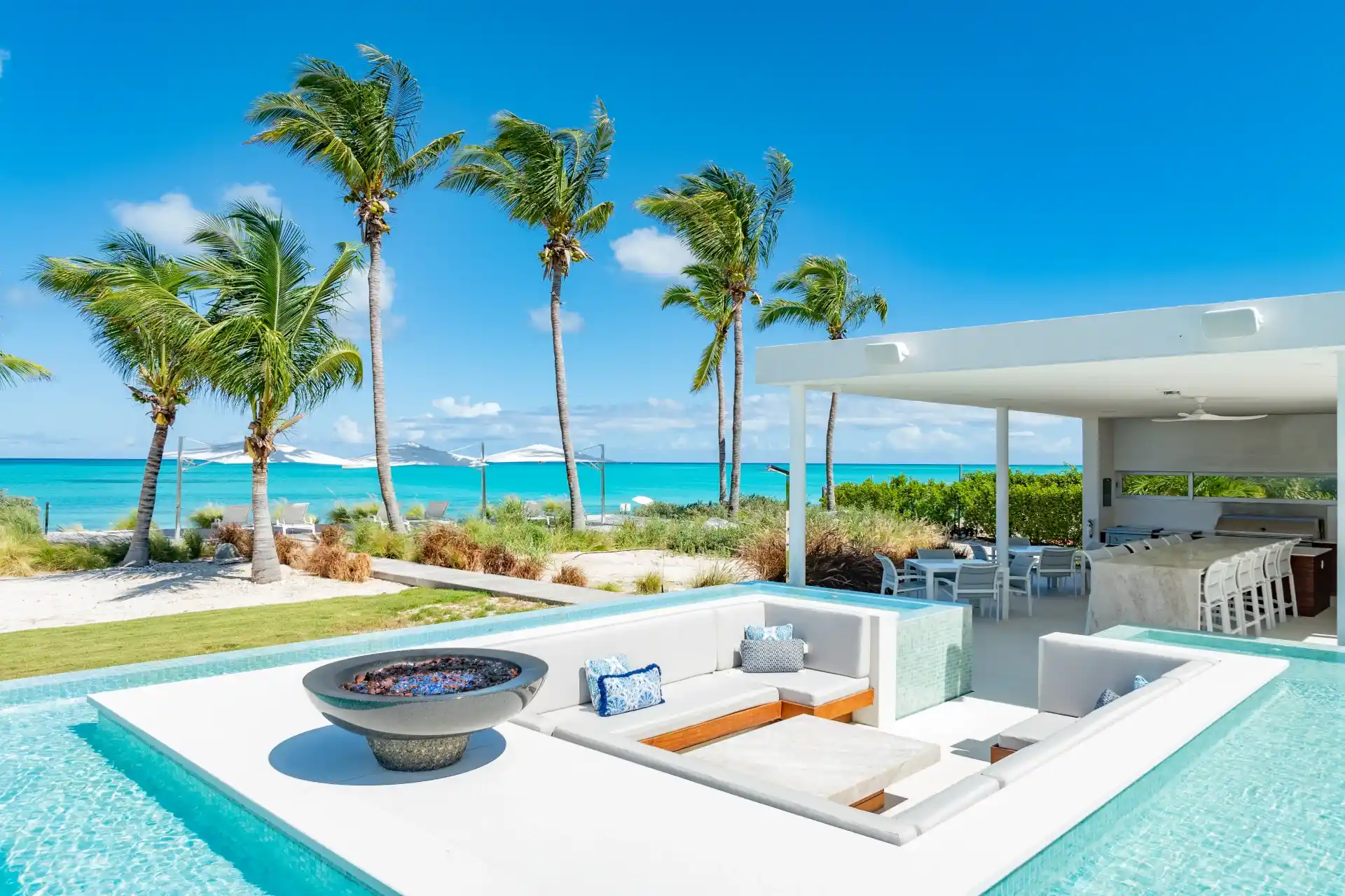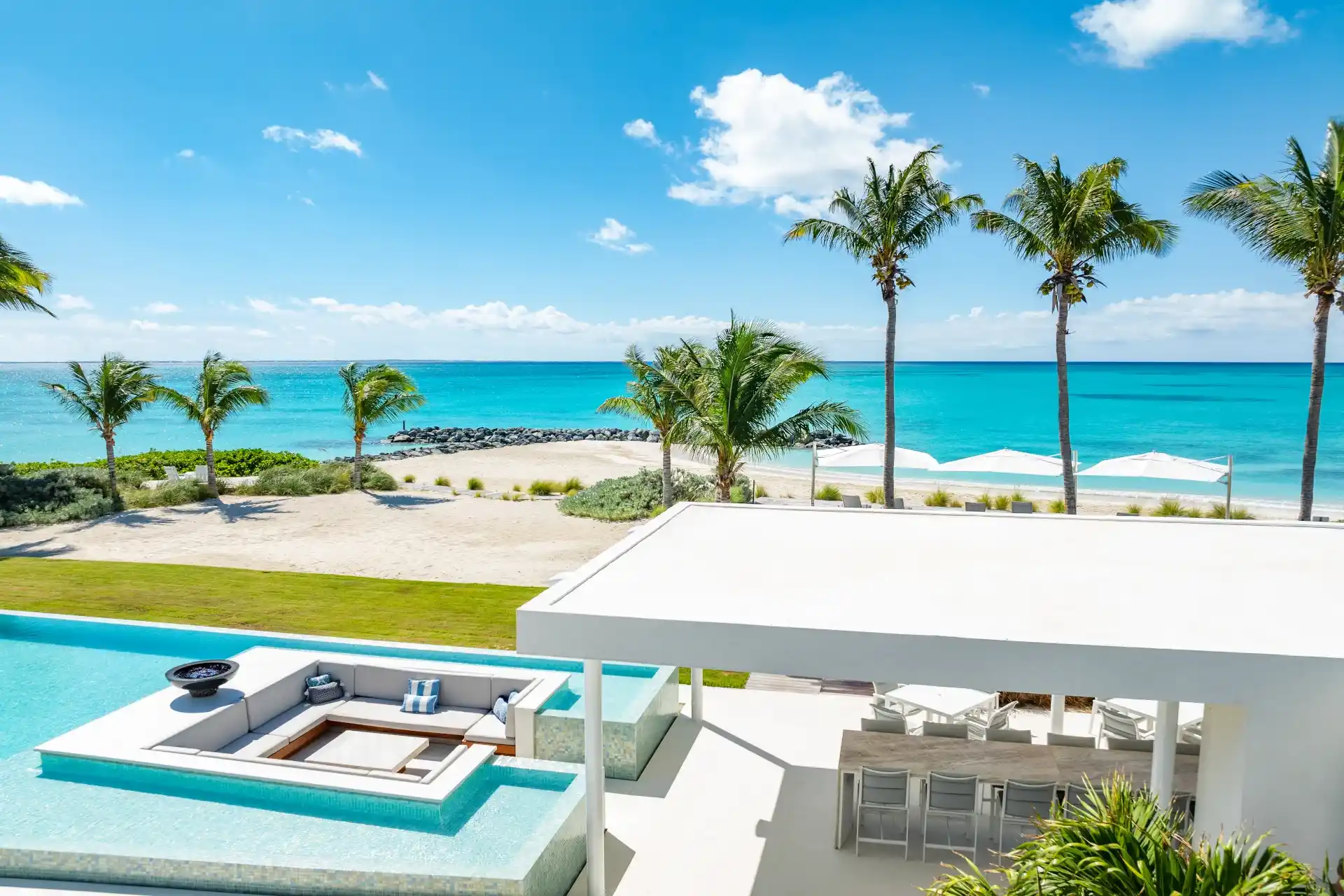 Villa Sol e Mare (villa code TC SEM), is a spectacular 6-bedroom beachfront estate combining lavish amenities, contemporary design, and panoramic ocean views to create the ultimate Caribbean retreat. Spanning two acres at the eastern end of Grace Bay with 200 feet of pristine beach frontage, the villa comfortably accommodates up to 20 guests—perfect for large families or groups with varied interests.