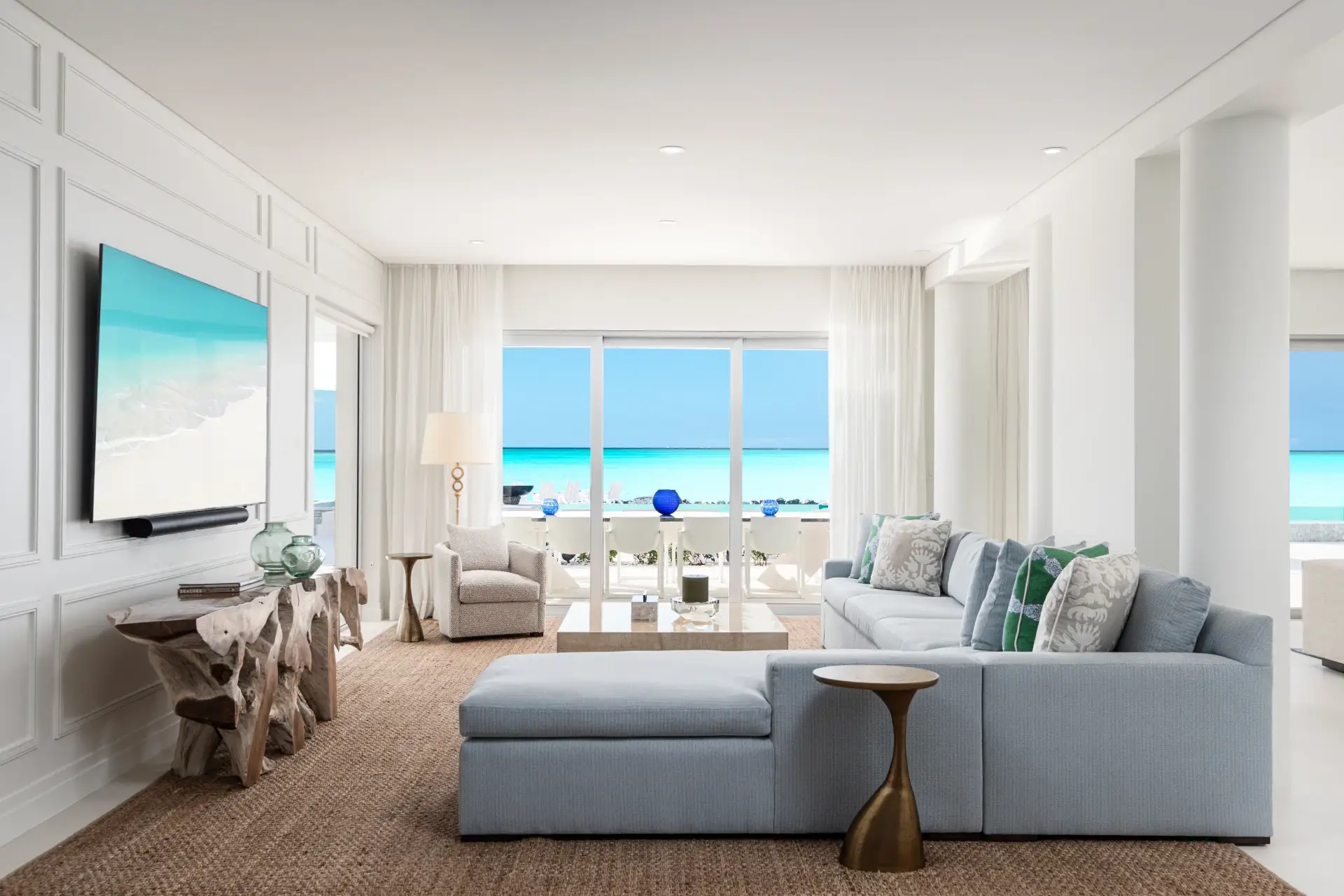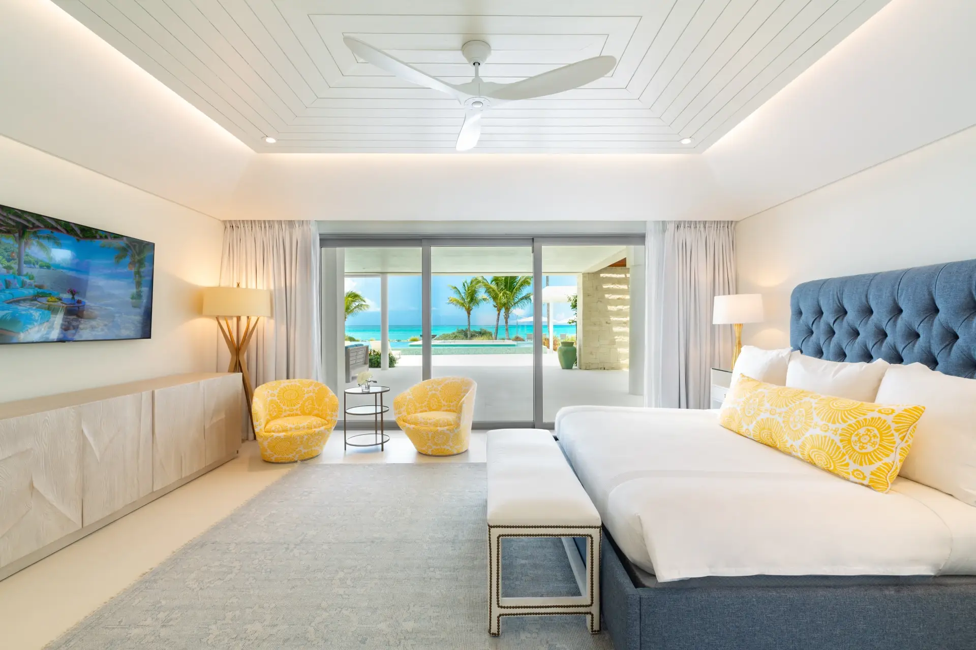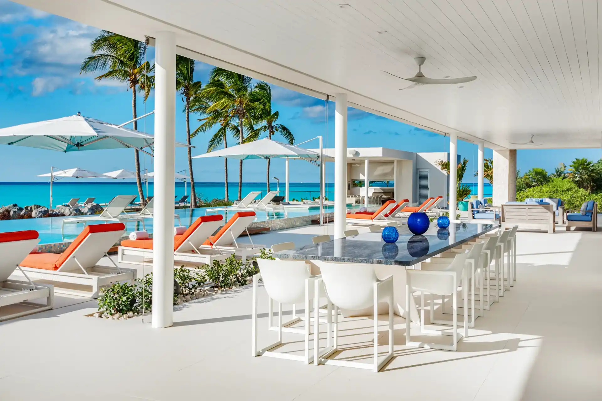 Villa Sol e Mare (villa code TC SEM), is a spectacular 6-bedroom beachfront estate combining lavish amenities, contemporary design, and panoramic ocean views to create the ultimate Caribbean retreat. Spanning two acres at the eastern end of Grace Bay with 200 feet of pristine beach frontage, the villa comfortably accommodates up to 20 guests—perfect for large families or groups with varied interests.