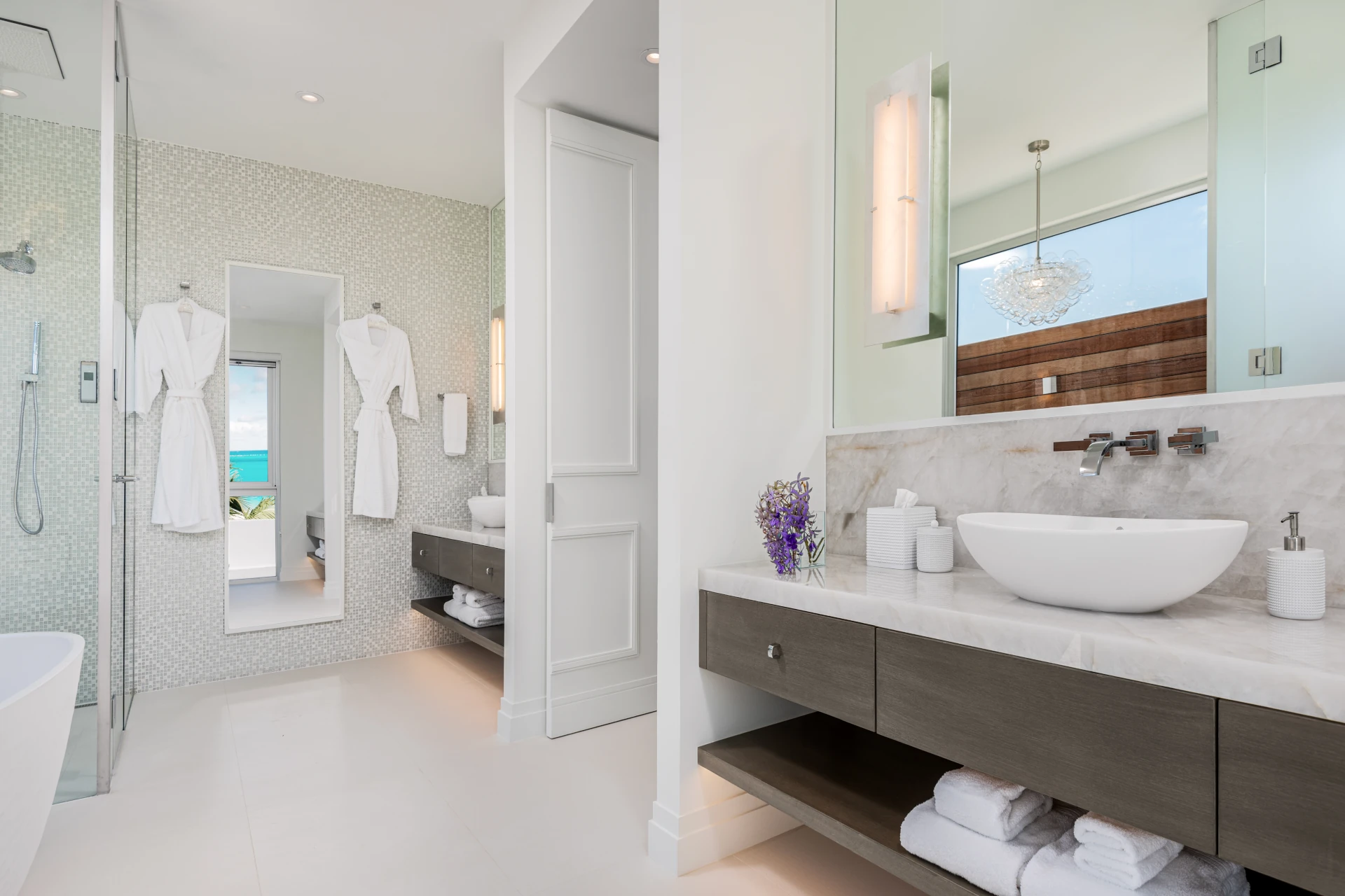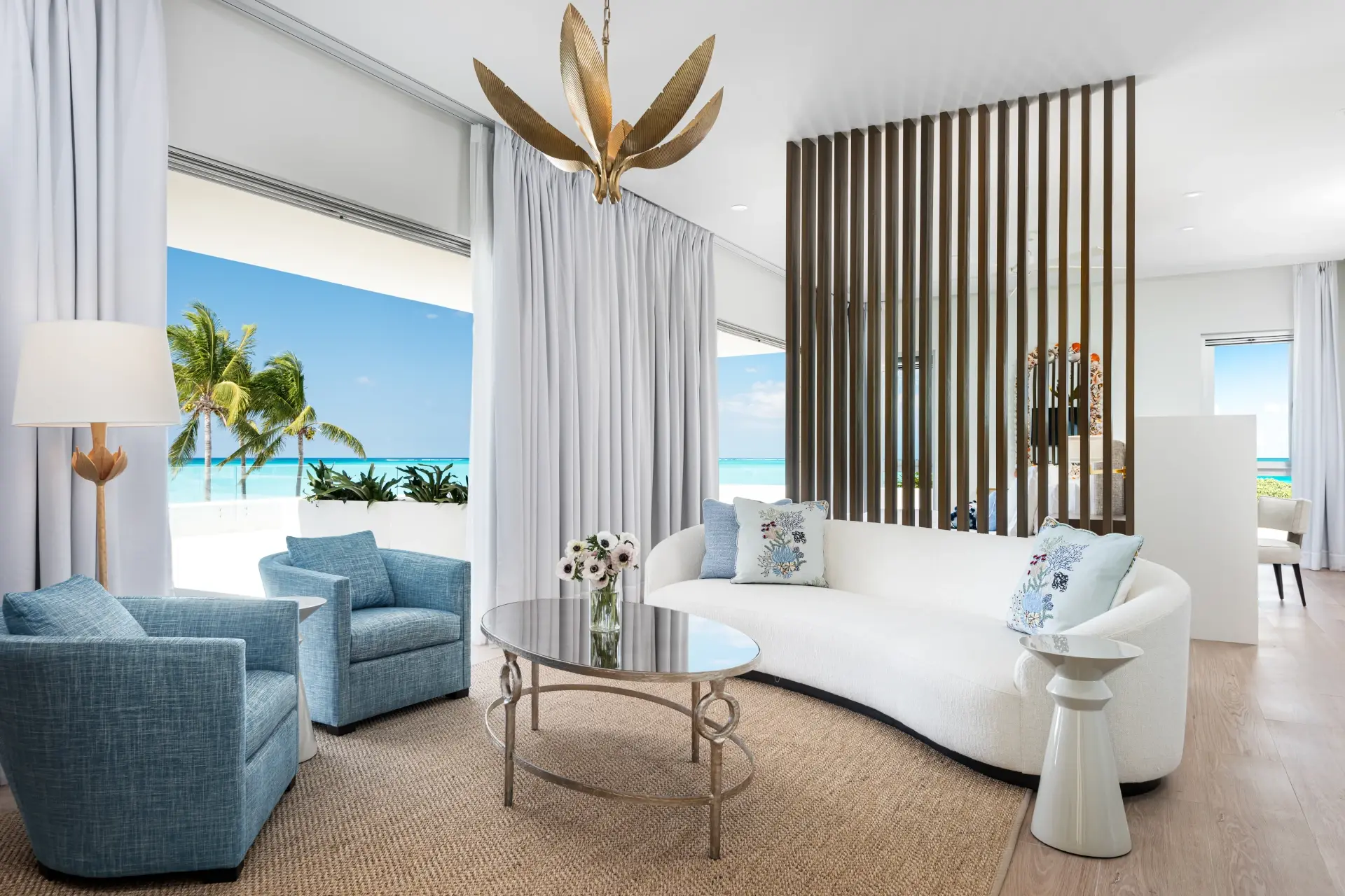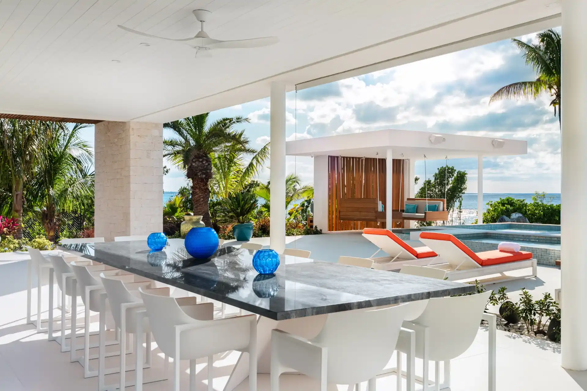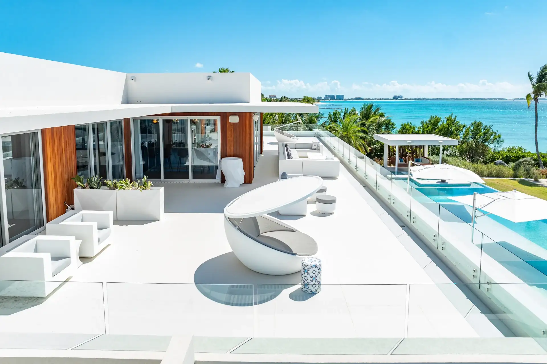 Villa Sol e Mare (villa code TC SEM), is a spectacular 6-bedroom beachfront estate combining lavish amenities, contemporary design, and panoramic ocean views to create the ultimate Caribbean retreat. Spanning two acres at the eastern end of Grace Bay with 200 feet of pristine beach frontage, the villa comfortably accommodates up to 20 guests—perfect for large families or groups with varied interests.