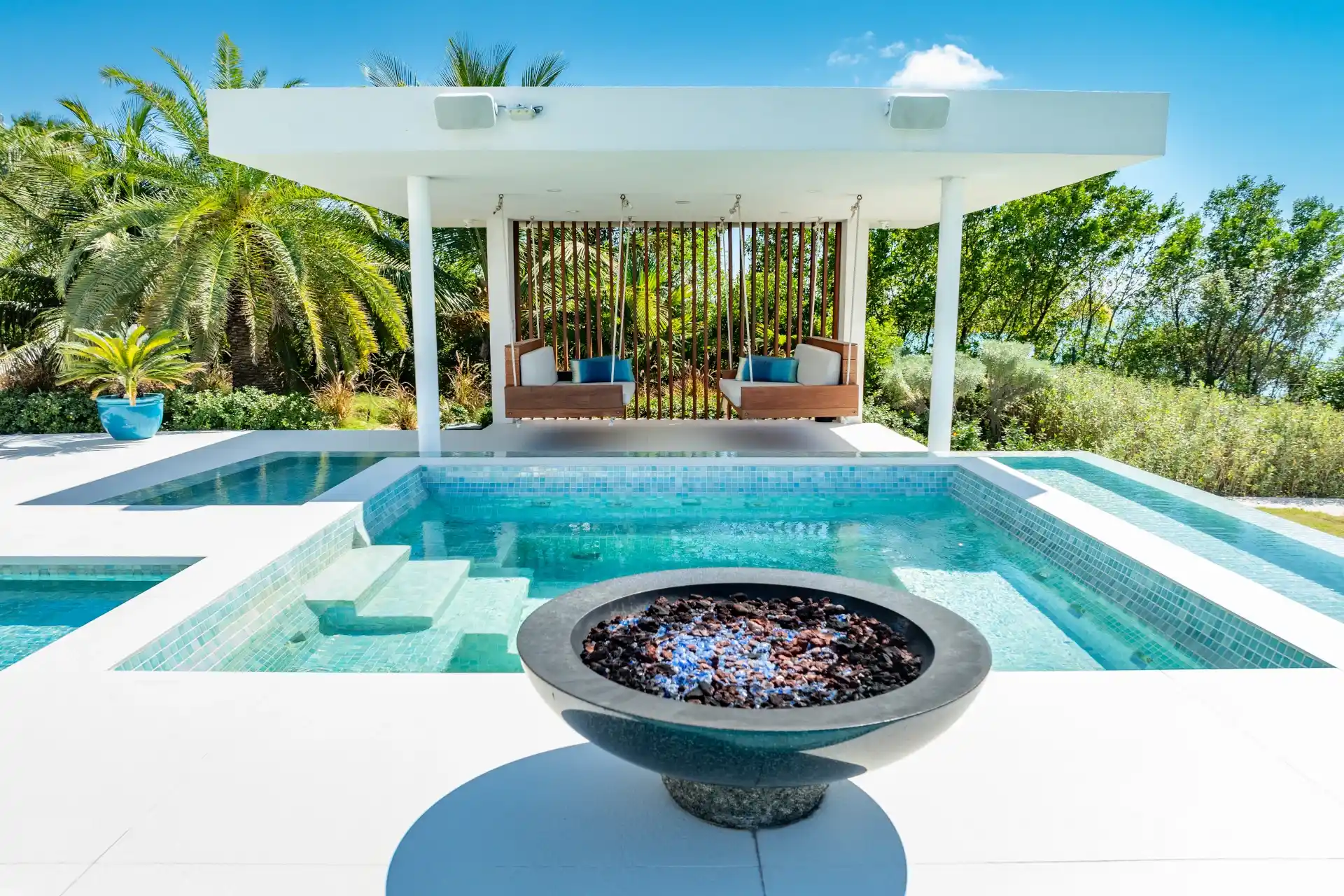 Newly-built and impeccably finished, the property offers countless ways to relax or entertain. Gather around the 100-foot infinity-edge pool with its 16-person spa, outdoor bar, media room, and full outdoor kitchen. When you crave privacy, retreat to one of the many serene spaces—hanging daybeds, shaded terraces, two beach decks, or a sunken lounge overlooking the sea.