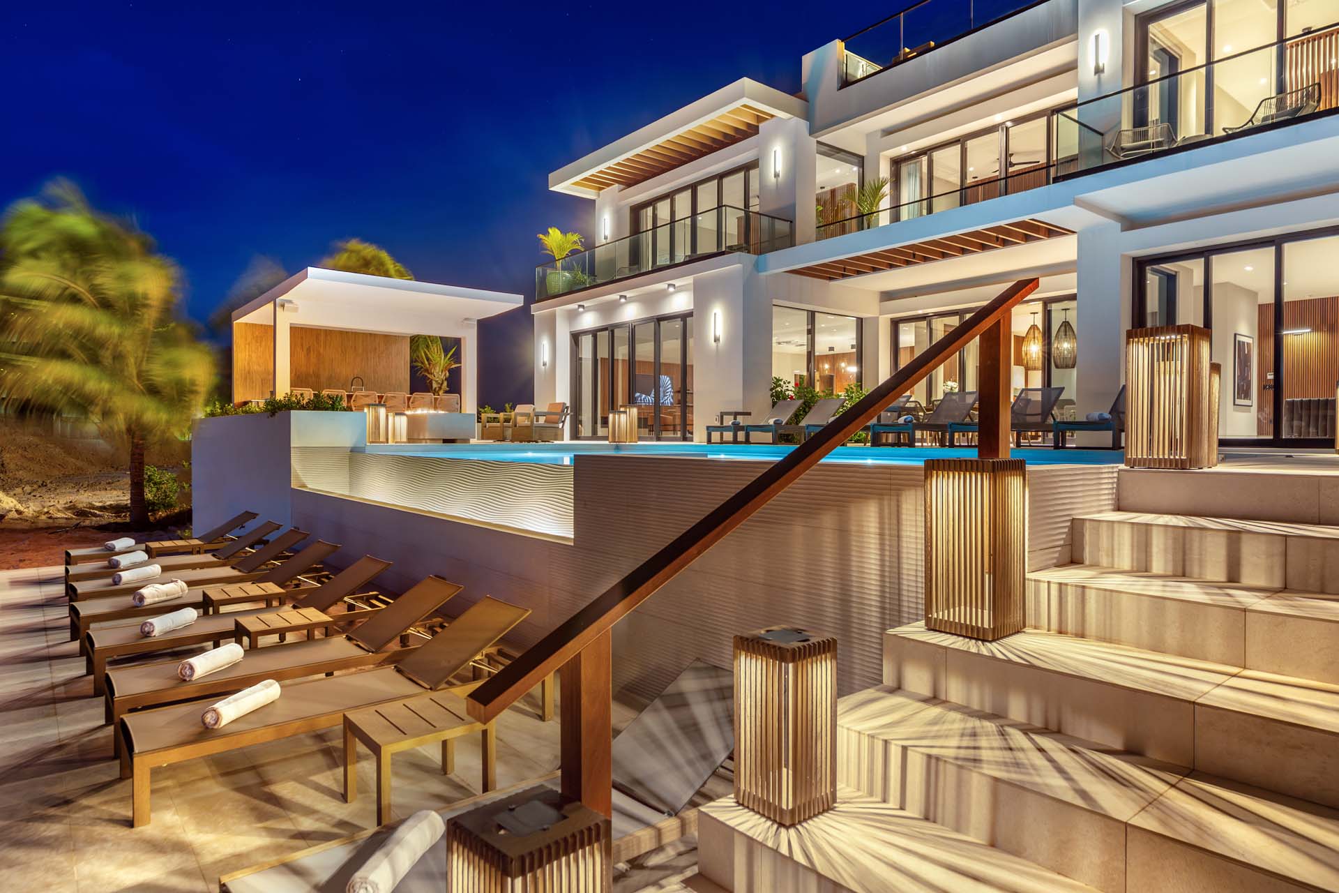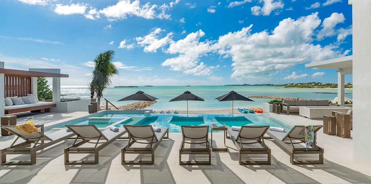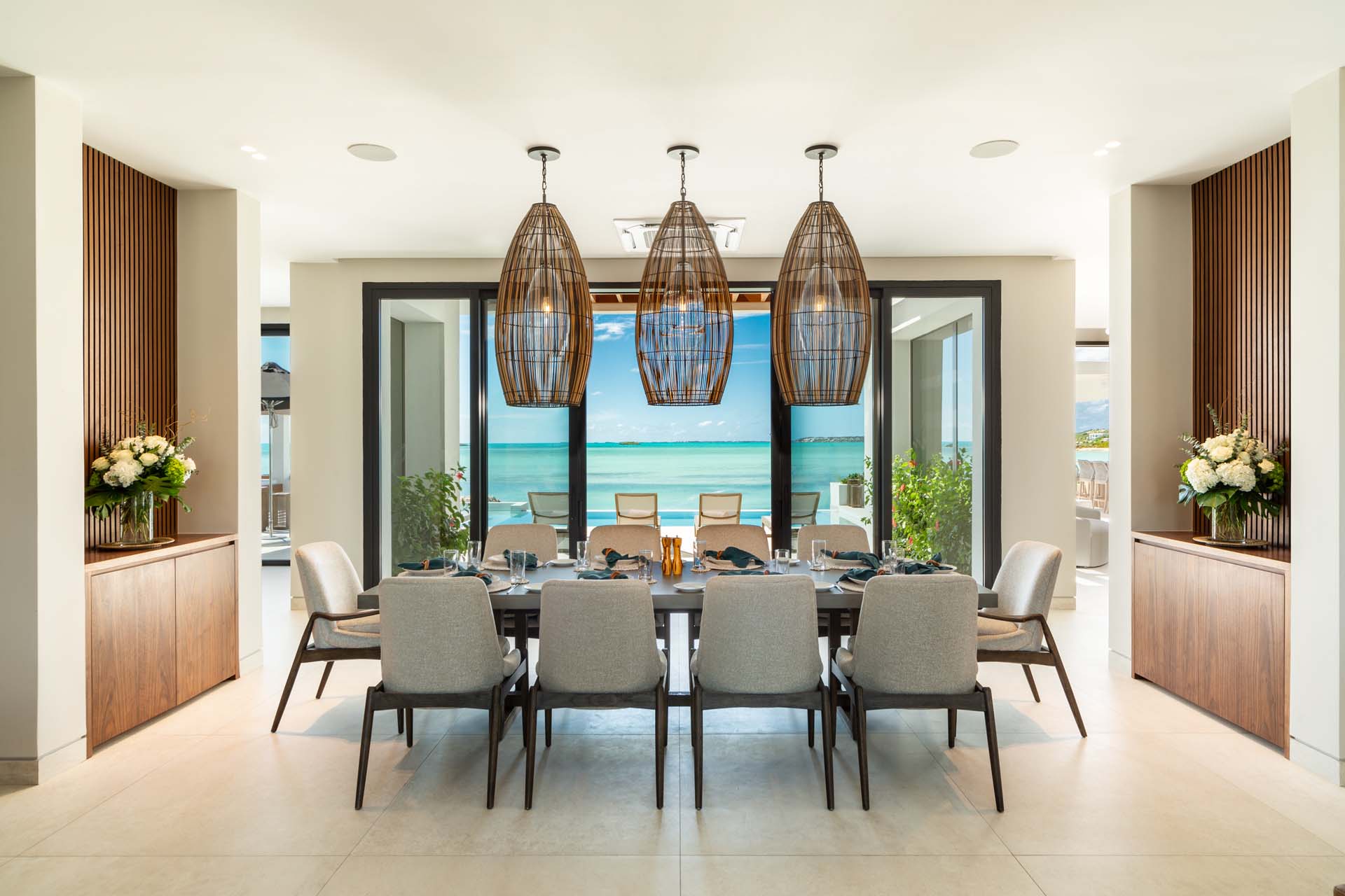 Villa Solara (villa code: TC SLA) is a private, high-end estate situated on the unspoiled Turtle Tail peninsula. This exceptional property showcases a timeless, open-concept design that harmonizes beautifully with its breathtaking natural surroundings. Featuring seven elegant bedrooms, Villa Solara provides generous accommodations ideal for large families or groups.