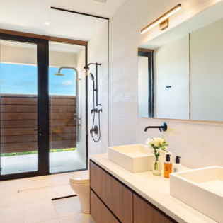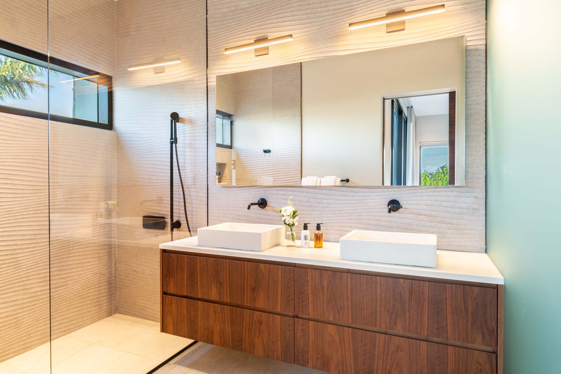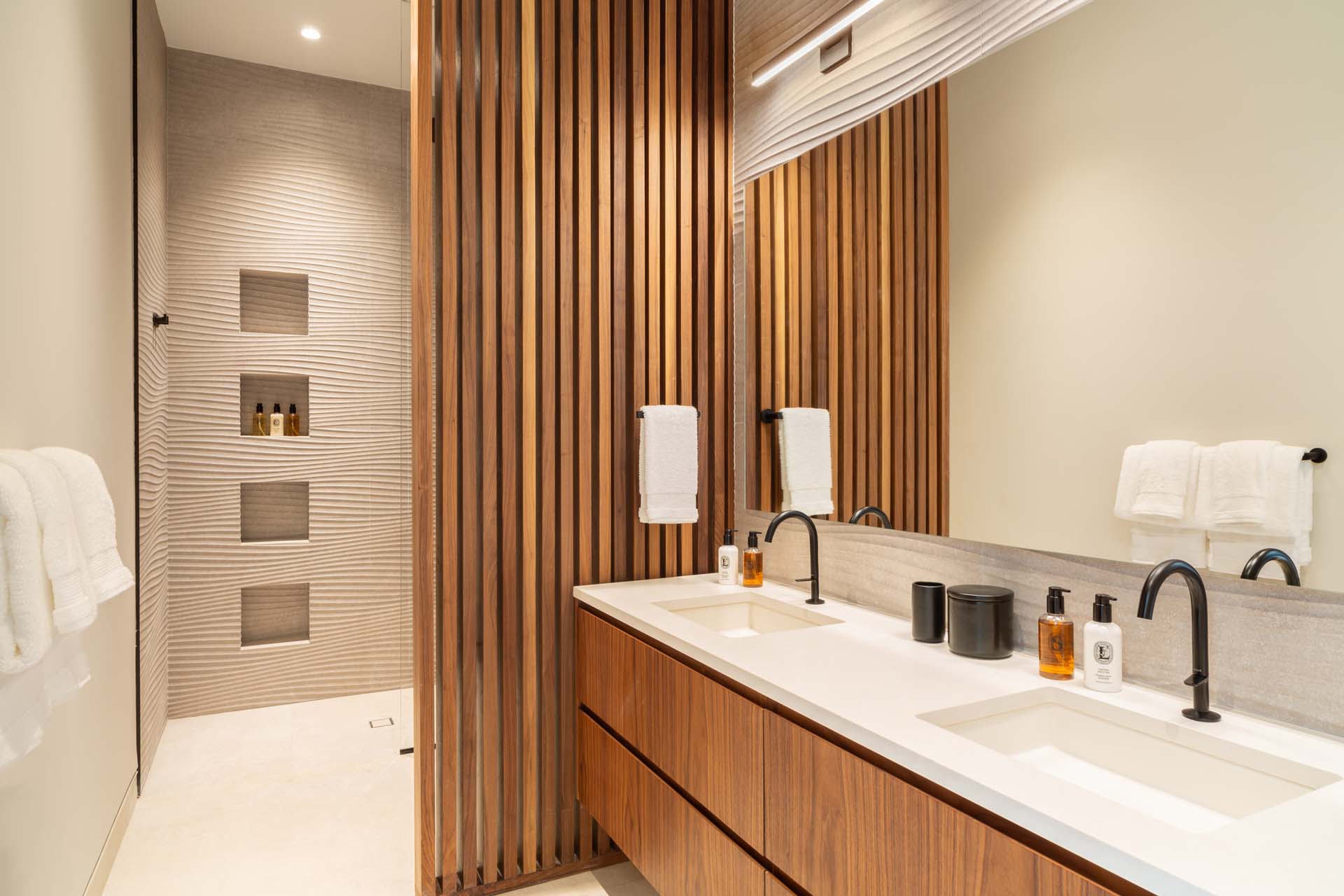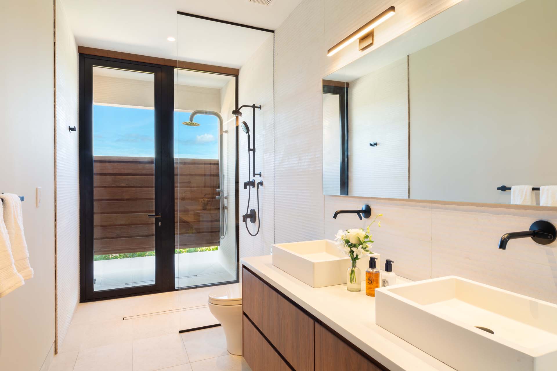 Ensuite bathroom, double vanity, indoor & outdoor shower
