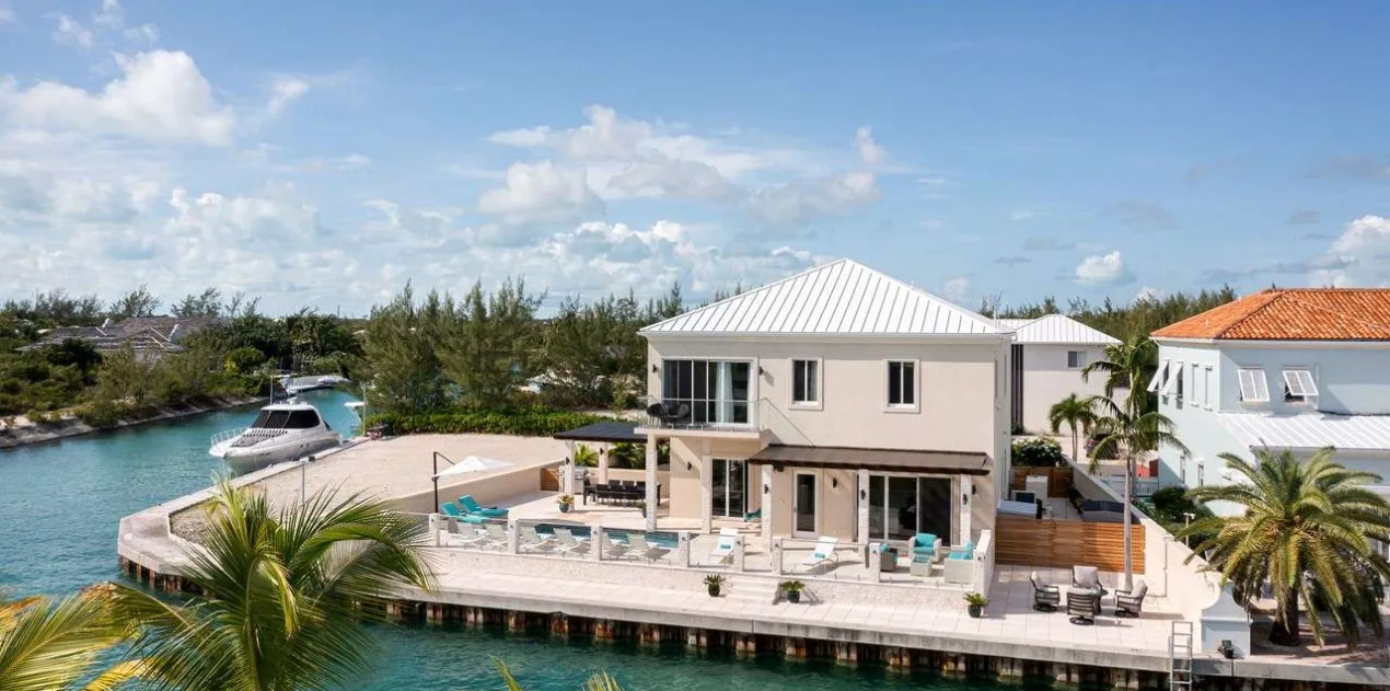 Villa Sugar Apple features indoor and outdoor dining, a fire pit and a private boat dock.