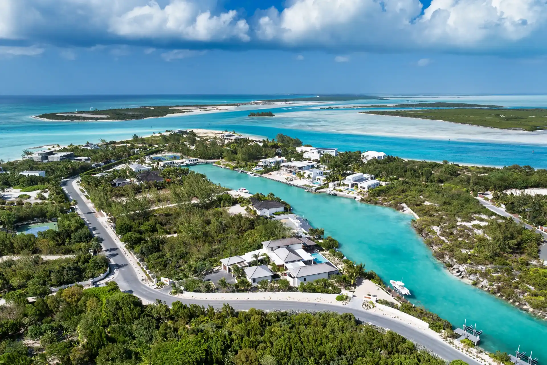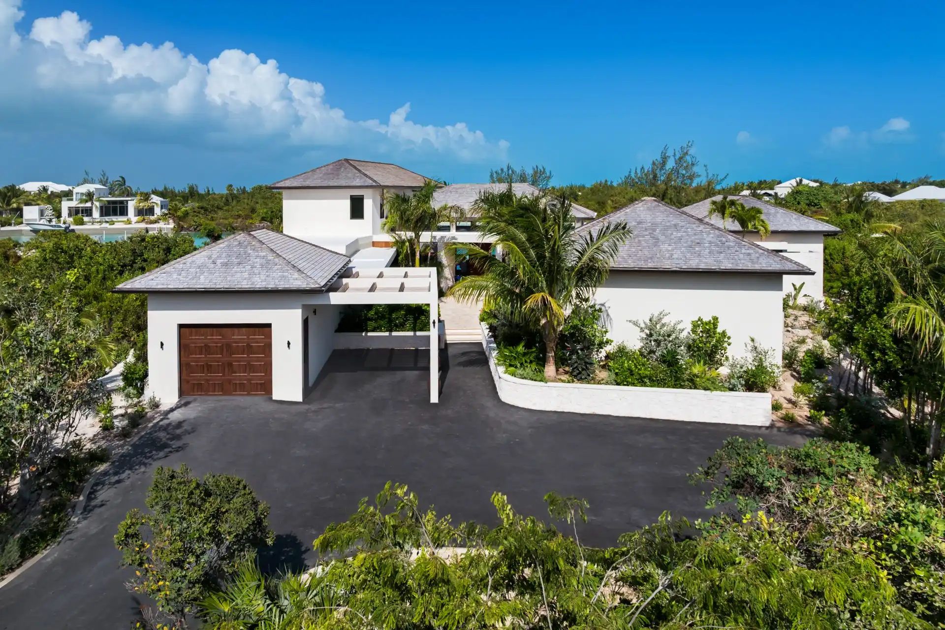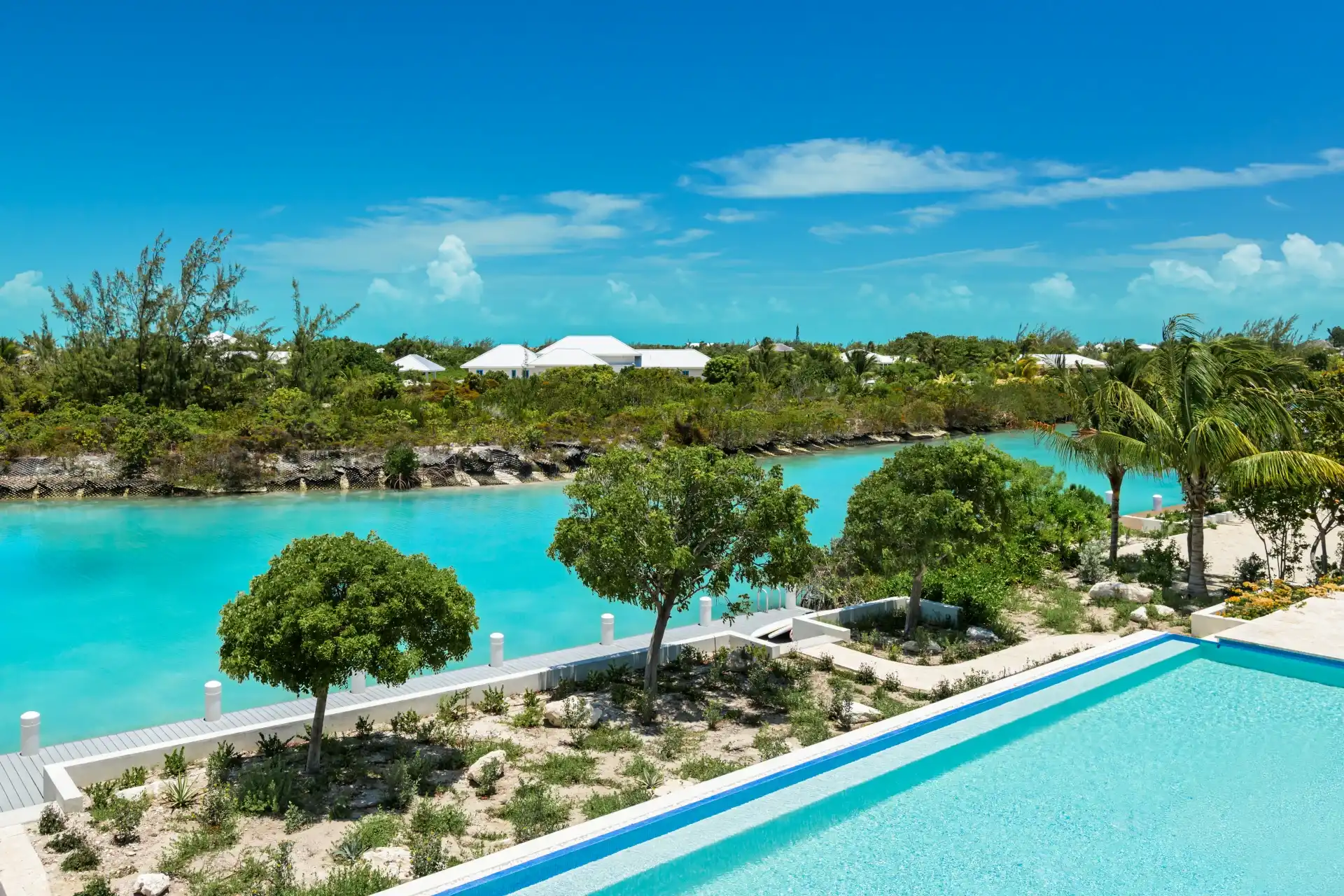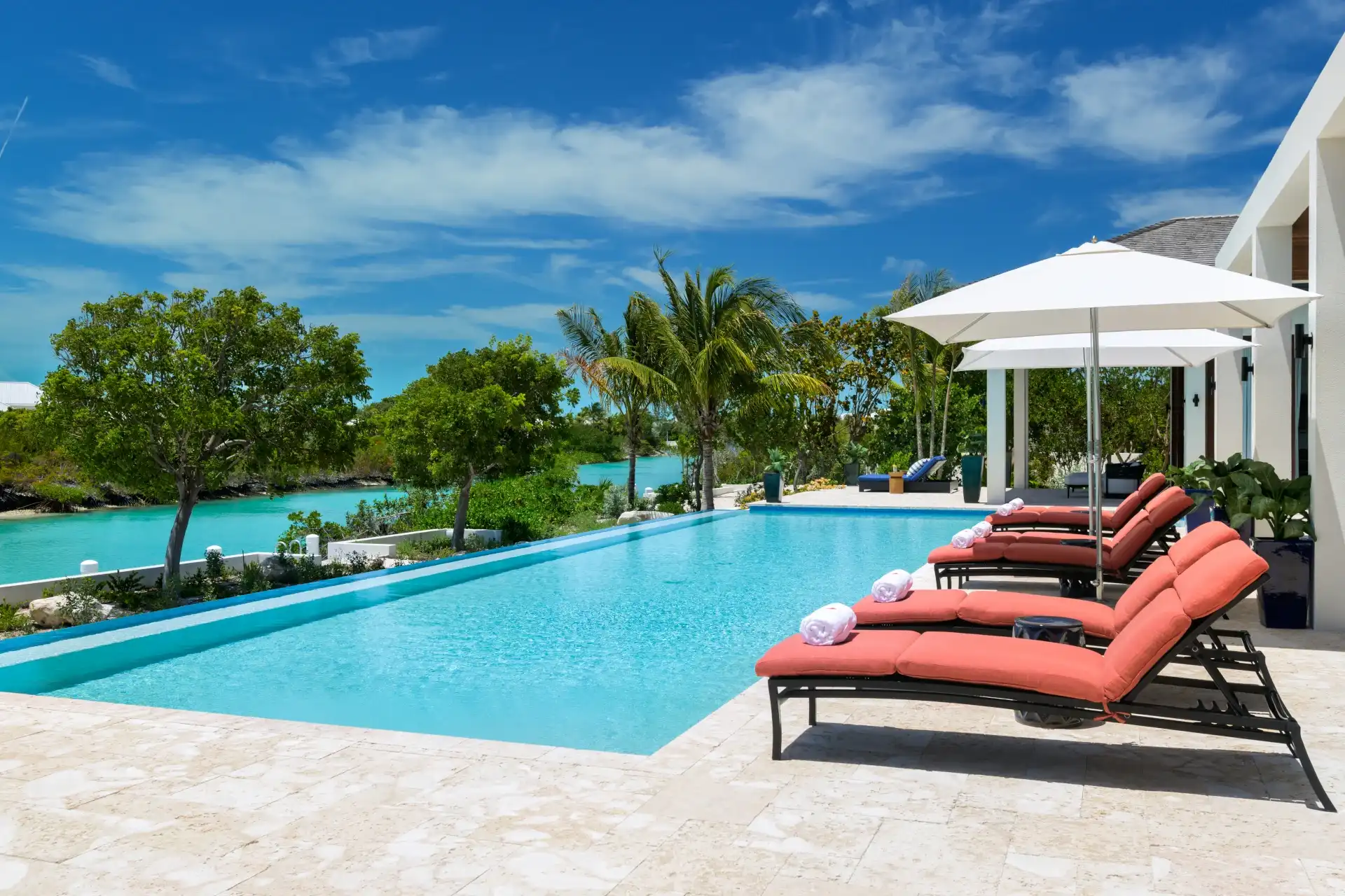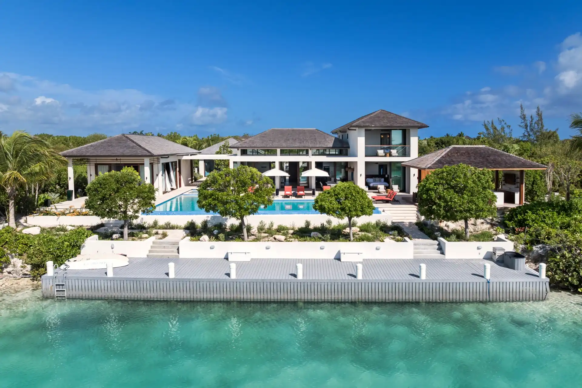 Villa Sundance offers both style and convenience—just an eight-minute drive to Grace Bay, yet tucked into the quiet luxury of Leeward. Days can be spent basking by the pool, shaded under breezy pavilions, watching movies, or setting out on the water from your own dock.