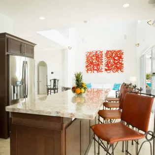 The contemporary and spacious kitchen at Villa Sunset Close will have foodies falling in love. Cabinets are clad in dark, tropical wood, contrasting with the latest stainless steel appliances. Cooking with local flavors here is easy and enjoyable.