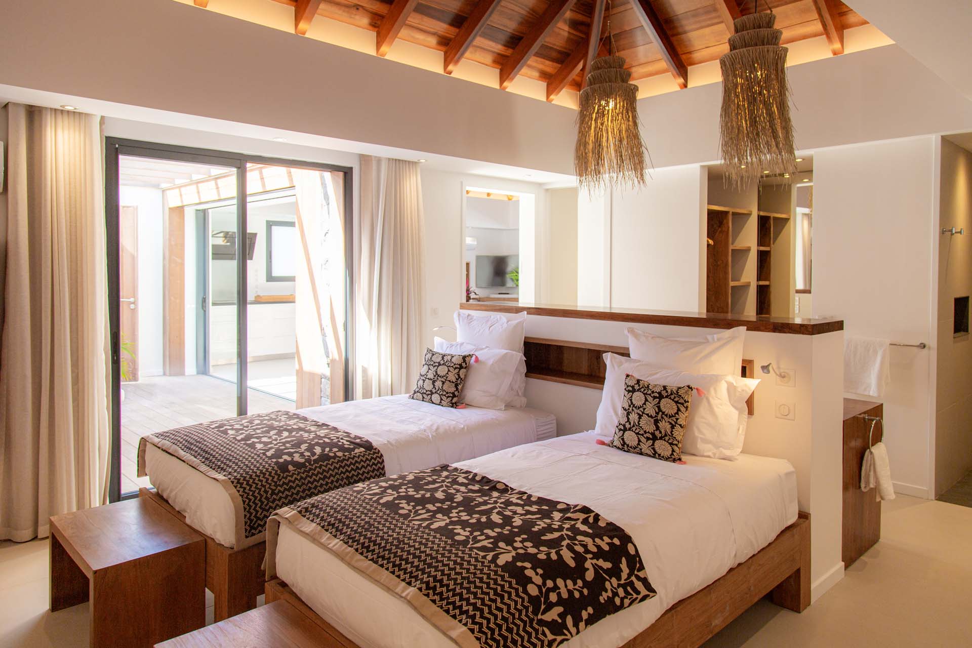 Villa Greenheart is one of two identical villas on the beach. Larger groups could rent it alongside Villa Prana (booking code: WV ACF) for a total of 6 bedrooms.