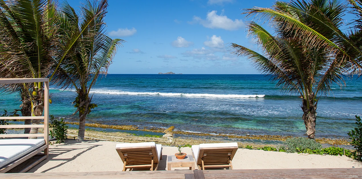 Between the terrace and the beach is a small sandy area, with loungers and a plush daybed for relaxing and basking in the island sun. Best of all, the inviting Caribbean Sea is mere steps away – this truly is an idyllic tropical paradise.