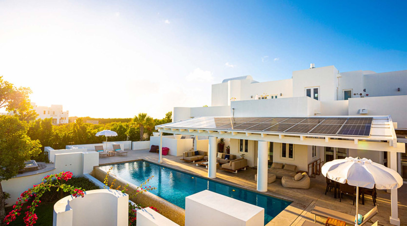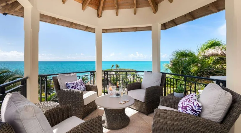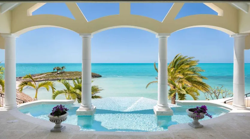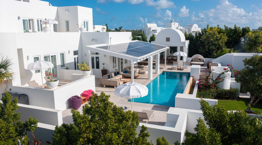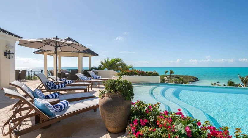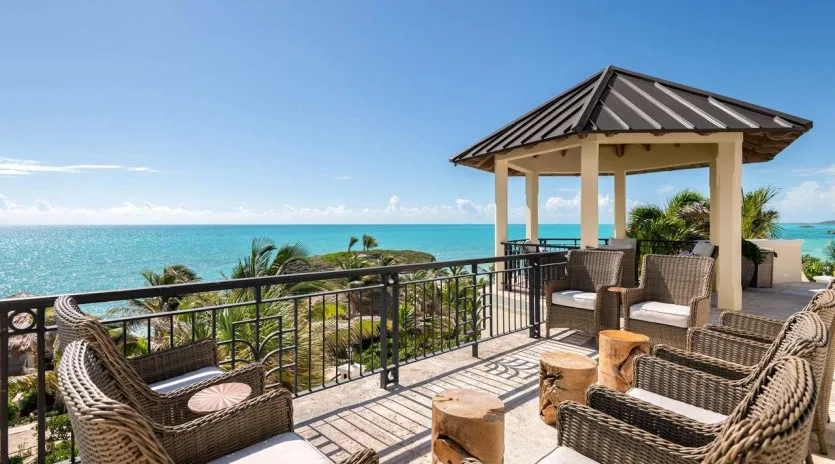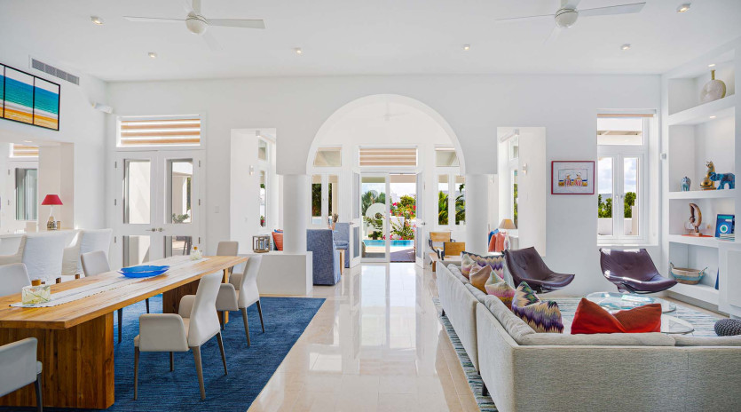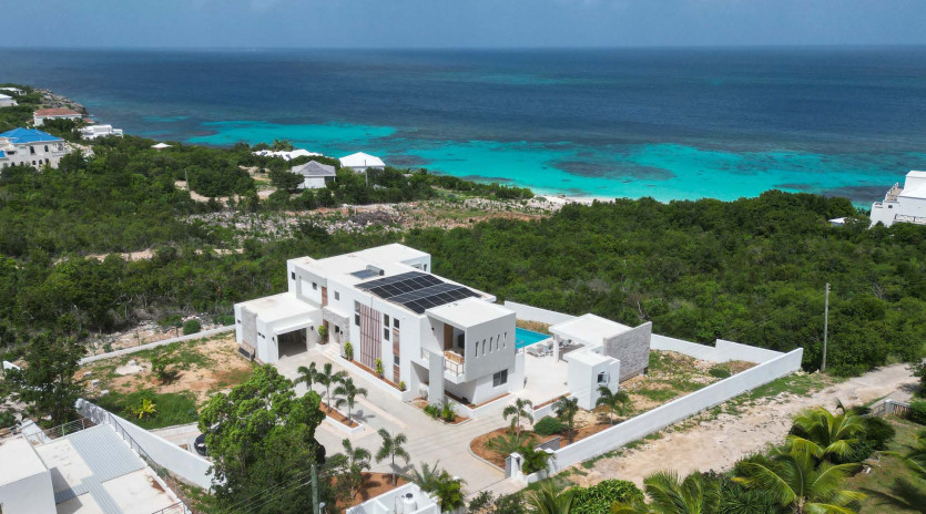 A luxurious modern escape with panoramic views of Grace Bay Beach.