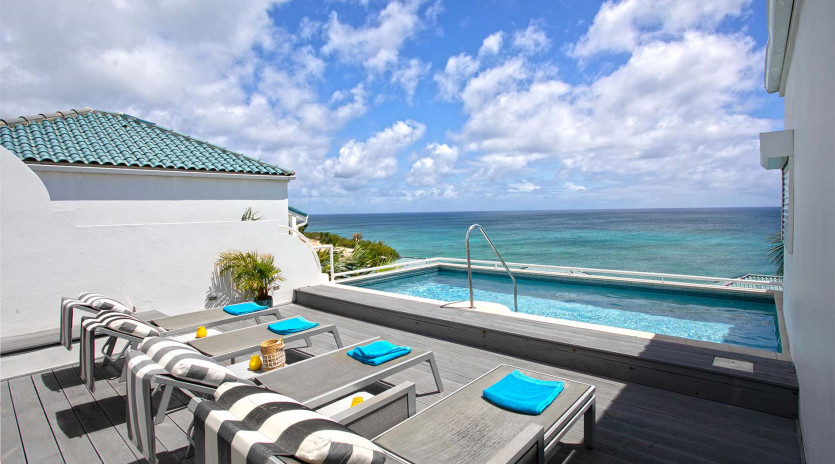 Colonial-style villa, perched above Plum Bay, spectacular vistas, large pool, walk to the beach