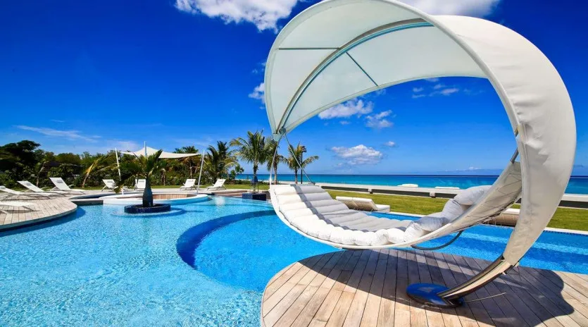 Astonishing beachfront property, gated community, nautilus shell-shaped pool