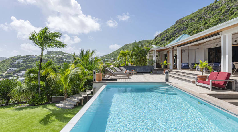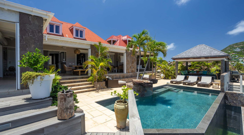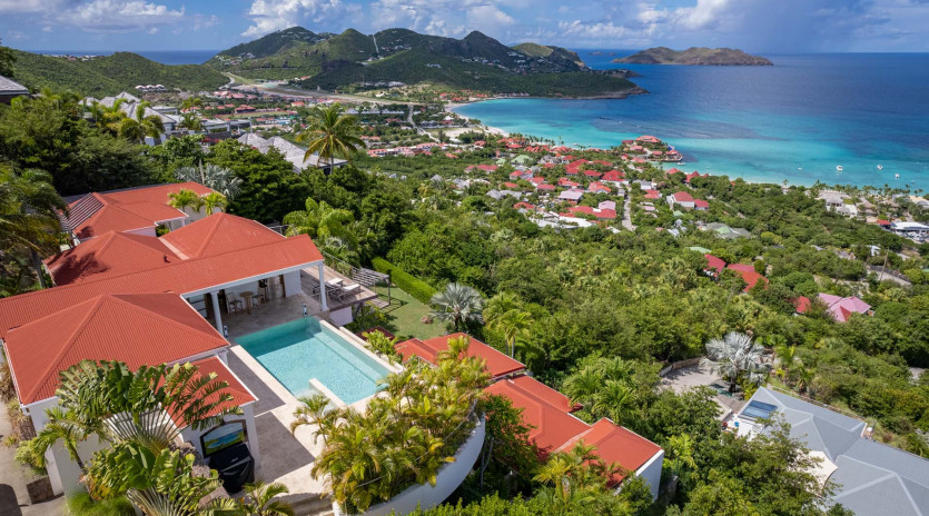 Newly-built, 5-bedroom luxury villa on the St. Jean hillside above Nikki Beach