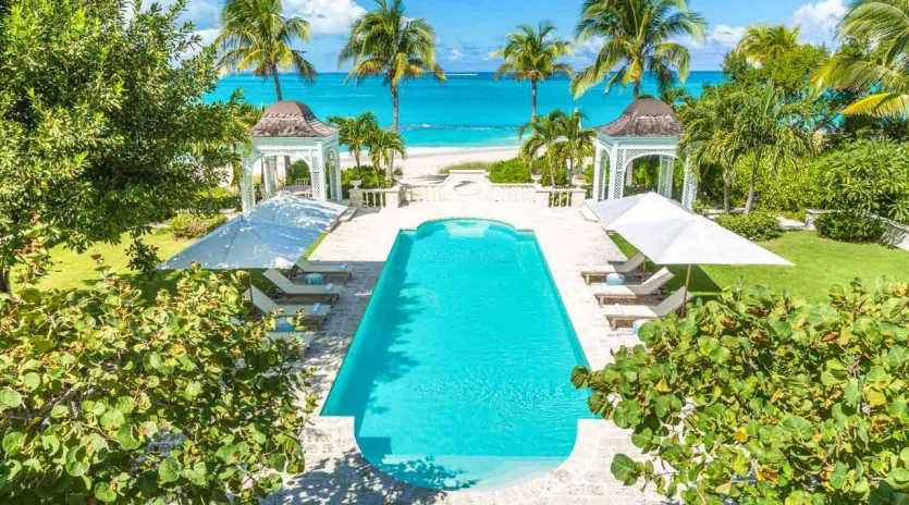 A 4,000 sq ft stunning 5-bedroom villa located directly on Sapodilla Beach