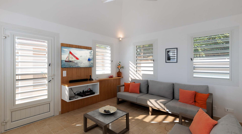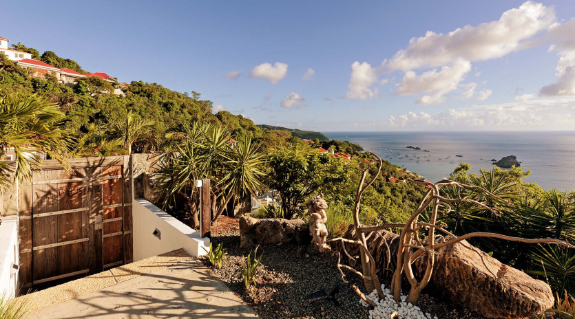 An enchanting oasis nestled into beautiful Terres Basses views of Baie Longue