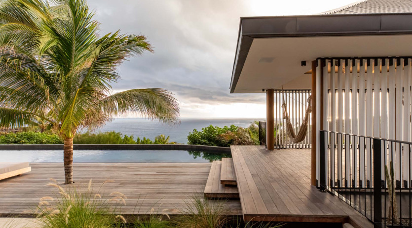 Modern villa with 3 separate bungalows and a colonial style, overlooking the beautiful bay