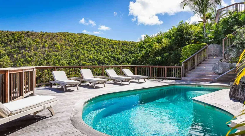 Luxurious 6-bedroom villa in Indigo Bay, St. Martin, featuring stunning Caribbean views and modern amenities