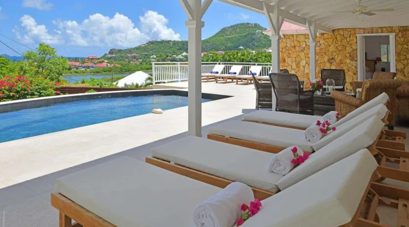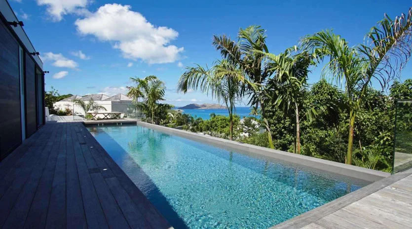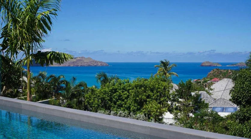 Relaxing by your infinity pool and reveling in stunning views of St. Jean Bay