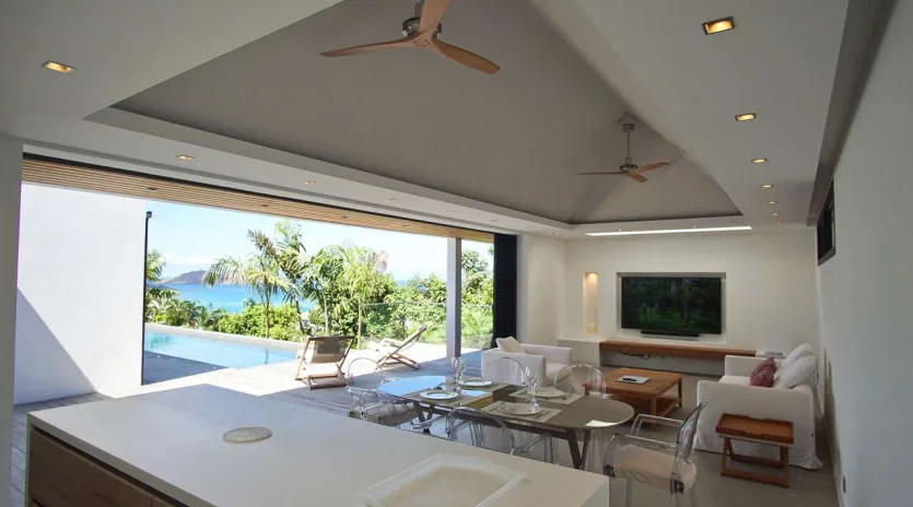 Newly-built in the hills of St. Jean, panoramic bay views and the ocean beyond